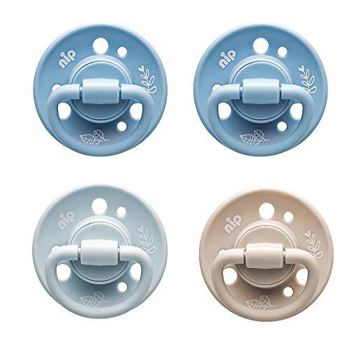Dieser Nip-Kirschform-Schnuller besitzt eine extraflache Schildform, die laut Hersteller besonders hautschonend wirkt und Hautreizungen im Mundbereich vermeiden soll.