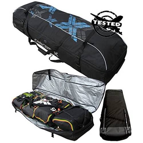 Viele Bags für das Kiteboarding oder auch Kitesurfing verfügen sowohl über Tragegriffe als auch über Schultergurte und Transportrollen. Ein Beispiel ist hier der Travel-Beach-Pro-Kitebag des Anbieters Concept X.