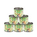 Das Kitten-Katzenfutter ist in kleinen Dosen verfügbar. Auf der Rückseite der Verpackung stehen Informationen zum Inhalt.