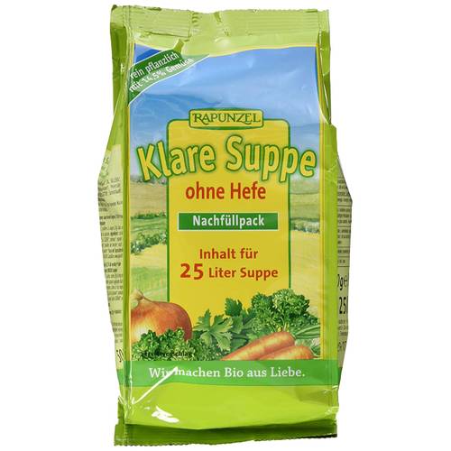 Wenn Sie klare Brühe kaufen, achten Sie darauf, dass das Produkt ohne künstliche Zusatzstoffe, wie Geschmacks- und Konservierungsstoffe, auskommt. Auch Hefe bzw. Hefeextrakt gilt als natürlicher Geschmacksverstärker. Hefe wird eine appetitfördernde Wirkung nachgesagt, deshalb sollten Sie auf Produkte mit Hefe lieber verzichten. Außerdem empfehlen wir, auf Brühen, die als Zusatz Palmfett aufweisen zu meiden, da Palmfett bzw. Palmöl über den vermehrten Anbau der Ölpalmen die Umwelt schädigt.