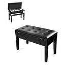 Die nächste Stufe bildet die mittelklassige Klavierbank mit Notenfach. Ihr Holz kann natürlich belassen sein oder auch in Hochglanz lackiert. Das optische Erscheinungsbild einer beispielsweise schwarzen Pianobank ist passend zum Klavier oder Flügel edel und gleichzeitig dezent. Eine Doppelsitzer-Klavierbank, auch Duett-Klavierbank genannt, bietet Ihnen zudem Platz für zwei Personen.