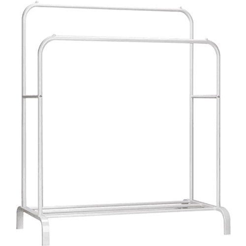 Einige Modelle wie der Ikea-Rigga-Kleiderständer haben eine zusätzliche Schuhablage. So müssen Ihre Schuhe nicht auf den Boden gestellt werden.