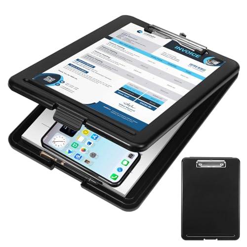 Praktisch sind auch Dokumentenfächer, in die Sie beispielsweise Visitenkarten, die Sie überreicht bekommen, stecken können. Insbesondere, wenn in Ihren Unterlagen auch sensible Daten notiert sind, die nicht für jedermann einsehbar sein sollen, wenn Sie das Klemmbrett bei sich tragen, ist ein Klemmbrett mit Deckel empfehlenswert.