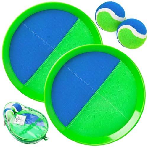 Machen Sie sich und Ihren Kindern eine Freude mit dem Ballsport, an dem sowohl Kinder als auch Erwachsene ihre Freude haben. Wenn Sie ein Klettballspiel kaufen, besteht es in der Grundform aus zwei Schlägern und einem Ball. Die Schläger sind mit Klettverschluss beschichtet, an dem der Ball problemlos hängen bleiben kann. Viele Klettballspiele kommen im Set mit mehreren Ersatzbällen. In unserem Klettballspiel-Vergleich finden Sie auch Modelle mit praktischer Netztasche, in der Sie alle Einzelteile des Spiels verstauen können.