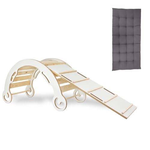 Abgesehen vom Material unterscheiden sich die verschiedenen Modelle auch in ihren Funktionen. Gemäß Kletterbogen-Tests im Internet können Sie sich auch für multifunktionale Modelle entscheiden. Erhältlich ist zum Beispiel ein Kletterbogen, der zur Wippe werden kann, wenn Sie ihn umdrehen. Das ist bei allen Modellen in der Tabelle zu unserem Kletterbogen-Vergleich der Fall.