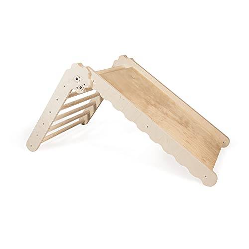 Die Kletterdreiecke bestehen aus zwei oder drei Seiten mit Leitern, können aber um weiteres Zubehör für Pikler-Dreiecke ergänzt werden. Einige Produkte können Sie direkt als Pikler-Dreieck mit Rutsche erwerben. Eine Rutsche sorgt für besonders viel Spaß und wird von Kleinkindern gern genutzt. Teilweise lässt sich bei dem Kletterdreieck mit Rutschbrett das Brett auch umdrehen und von der anderen Seite als weitere Leiter nutzen.