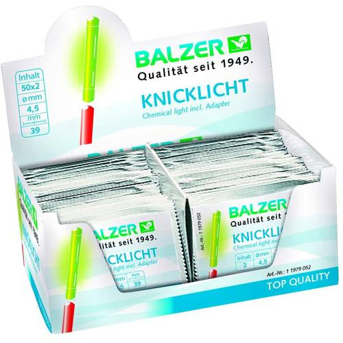 Platz 1 | Balzer Knicklichter | ca. 13 € | 100 Stück 50 Packungen à 2 Stück | lange Leuchtdauer | ![]() ![]() | |