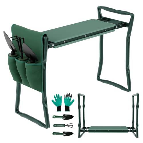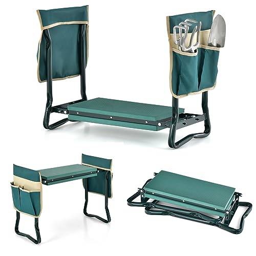 Die besten Kniebänke für den Garten verfügen zudem über Taschen, die sich an einer der beiden Seiten der Bank oder an beiden Seiten befestigen lassen. In den Taschen und ihren Fächern ist Platz für Gartenwerkzeuge und Kleinteile, die Sie während der Gartenarbeit benötigen. Viele der Garten-Kniebänke in Internet-Tests sind klappbar und somit leicht zu verstauen.