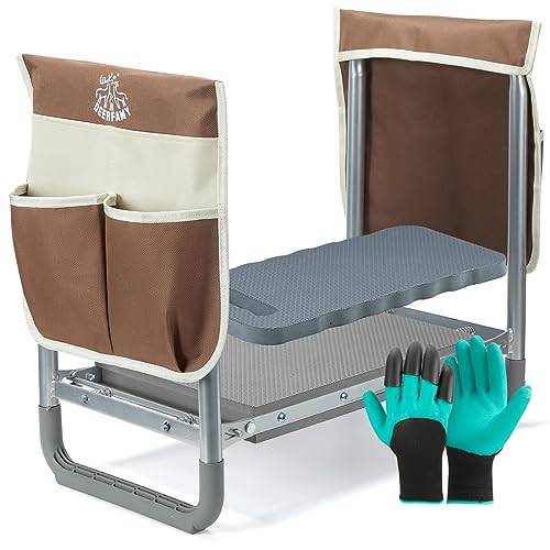 Alle Modelle in unserem Vergleich von Garten-Kniebänken sind 2-in-1-Produkte: Diese Modelle lassen sich umdrehen, sodass aus der Kniebank eine Sitzbank für Gartenarbeiten wird. So können Sie die Bank ganz nach Ihren individuellen Bedürfnissen aufstellen, um nahe am Boden oder auf Augenhöhe zu arbeiten. Wenn Sie bei der Gartenarbeit gern sitzen, sollten Sie eine Garten-Kniebank kaufen, die beide Funktionen erfüllt.