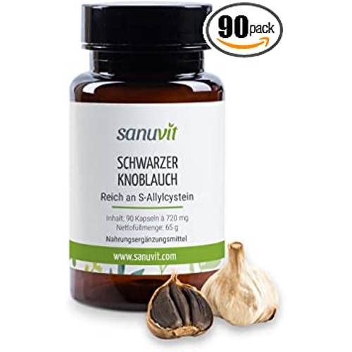 Platz 5 | Sanuvit Schwarzer Knoblauch | ca. 23 € | 1 Kapsel pro Tag ca. 0,27 € | schwarzer Knoblauch | ![]() ![]() |