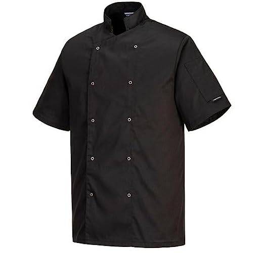 Wer auf der Suche nach einer kurzärmligen Kochjacke ist, sollte sich das Modell von Strongant ansehen. Uns gefällt daran, dass es schlicht ist und über eine praktische Druckknopfleiste zum Öffnen und Schließen verfügt. Sowohl für Bäcker als auch für Köche könnte diese Jacke eine gute Wahl sein.