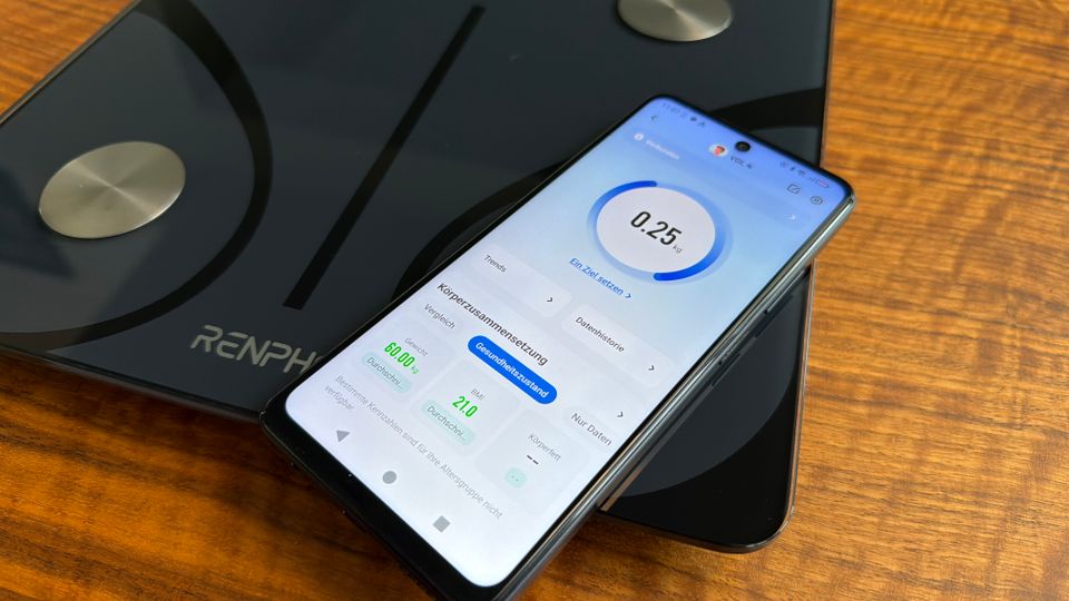 Die Renpho ES-CS20M ist mit 28 x 28 cm Trittfläche deutlich kompakter. Sie ist ideal für kleinere Füße bis etwa Schuhgröße 43. Die maximale Traglast beträgt 180 kg. Ermittelt werden 13 Messwerte, darunter auch das Stoffwechselalter und der Grundumsatz. Praktisch ist das intuitive Farbsystem in der App. Insgesamt ist das Gerät sehr einsteigerfreundlich und vor allem aufgrund des Preis-Leistungs-Verhältnisses empfehlenswert.