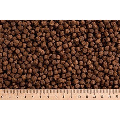 1 mm-Pellets für Kois unter 15 cm und 3 mm-Portionen für größere Tiere.