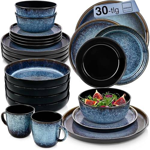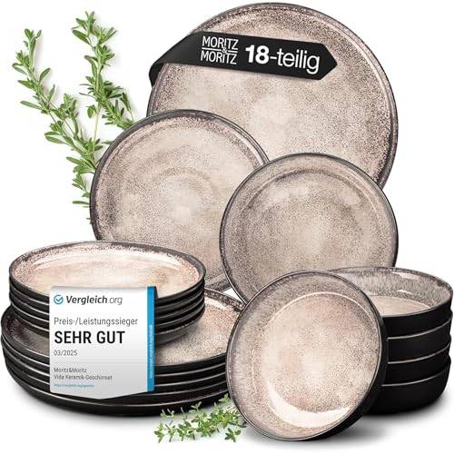 Ein Kombiservice aus Keramik bietet dank der Glasur eine glatte, oft glanzvolle Oberfläche und ist in verschiedenen Farben und Designs erhältlich. Im Vergleich zu Porzellan ist Keramik meist schwerer und nicht so fein, aber ebenfalls langlebig.