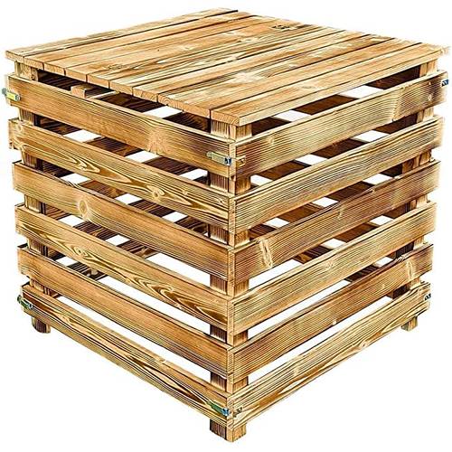 Bei den Holz-Kompostern handelt es sich in der Regel um Behälter, die eine Kastenform haben, wie zum Beispiel der Holz-Komposter von Gartenwelt. In der Tabelle unseres Vergleichs von Holz-Kompostern finden Sie entsprechende Produkte.