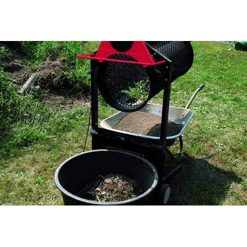 Das Rüttelsieb ist ein Kompostsieb als meist rundes und flaches Rahmensieb. Es kann ganz einfach manuell genutzt werden, indem es hin und her bewegt wird und der Kompost dadurch durch die Maschen fällt. Es gibt aber auch elektrische Kompostsiebe als Rüttelsieb, bei denen der Rüttelvorgang mit Hin- und Her-Bewegungen durch einen Motor übernommen wird. Auch mit einer Kurbel ist dieses Kompostsieb möglich. Die Kurbel des Rüttelsiebs drückt den Kompost durch das Gitter, vergleichbar mit einer Kartoffelpresse in Ihrer Küche.