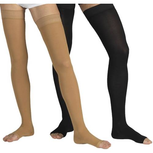 Dicke | Kompressionsstrümpfe werden dicker als modische Nylon-Strümpfe fabriziert, wodurch sie auch wesentlich blickdichter als ihre Artgenossen sind. Das hat den Vorteil, dass unliebsame Flecken und Rötungen am Bein kaschiert werden können. Wer Kompressionsstrumpfhosen oder Kompressions-Strapse trägt, der kann seine Beine problemlos mit den medizinischen Strümpfen zeigen, ohne dass es dem ungeübten Auge auffällt. Sportliche Stützstrümpfe sind noch dicker, was optisch weniger ins Gewicht fällt. Im Sommer kann es jedoch schon mal sehr warm an den Waden werden. |
