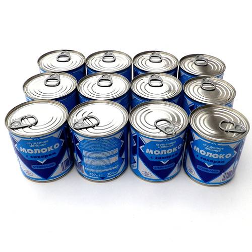 Wir erfahren, dass die 305 ml Kuljanka-Kondensmilch einem Gewicht von 397 g entsprechen.