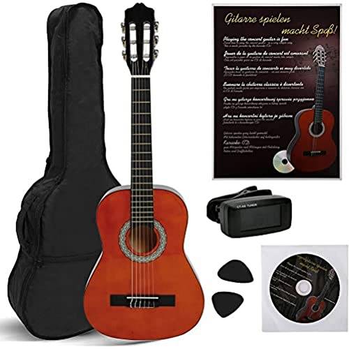 Die 1/2-Gitarre hat eine Mensur von etwa 53 cm und ist ideal für Kinder zwischen 5 und 8 Jahren oder Personen mit einer Körpergröße unter 125 cm. Die 1/2-Gitarre ist sehr handlich und erleichtert den Einstieg ins Gitarrenspielen durch ihre kompakte Bauweise.