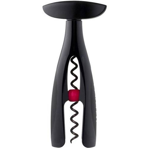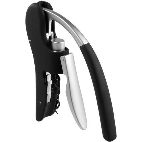 Flügelkorkenzieher![]() | Hier befindet sich die Spindel mittig in einem Gussgehäuse. Seitlich liegen zwei flügelförmige Hebel mit Schrauben als Drehachse am Weinöffner an. Wenn Sie die Spindel in den Kork eindrehen, steigen die Flügel von selbst nach oben und beim Herunterdrücken beider bewegt sich der Pfropfen aus der Flasche. |