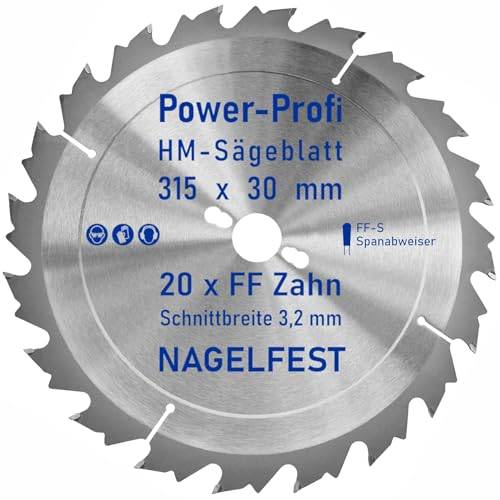 Beabsichtigen Sie, Ihre Kreissäge auf dem Bau zu nutzen, sollten Sie nach einem Kreissägeblatt mit 315×30 mm greifen, das nagelfest ist. Denn nur diese Variante kann Holzplatten sägen, die eventuell Nägel und Zement beinhalten, ohne die Kreissäge zu beschädigen bzw. Ihnen Verletzungen zuzufügen. Nur die Artikel, die in der Tabelle als nagelfest vermerkt sind, dürfen für industrielle Baumaßnahmen verwendet werden.