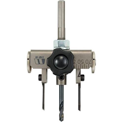 Kaufen Sie einen Kreisschneider mit einem Bohrdurchmesser, der für Ihre Zwecke die richtige Größe hat. Geräte, die einen Durchmesser von mehr als 200 mm haben, sind flexibel einsetzbar. Allerdings wird bei Arbeiten mit kleinen Durchmessern von 100 bis 120 mm der lange Arm des Lochkreisschneiders häufig zu einem Hindernis.