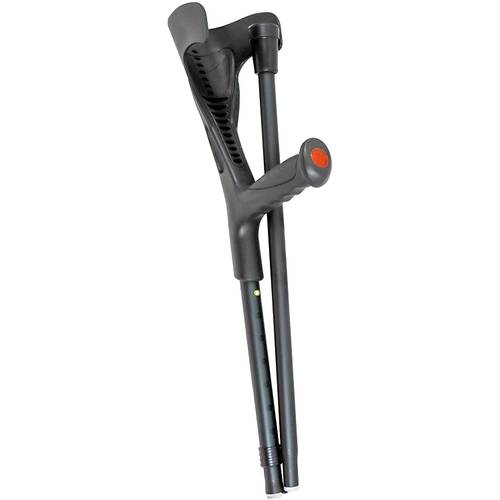 Unterarmkrücke | Die Unterarmkrücke (auch: Unterarmgehstütze oder Unterarmstütze), ist das Basismodell. Sie stützen sich mit der Handfläche auf den Griff und betten Ihren Unterarm in der Stütze. Auf diese Weise verlagern Sie Ihr Körpergewicht beim Gehen auf die Gehhilfe und Ihre Beine werden entlastet. Die Unterarmstütze eignet sich für: