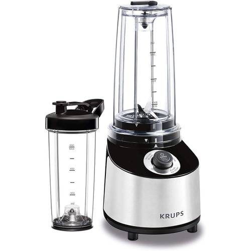 Die Kapazität der Behälter von Krups-Standmixern variiert zwischen 0,6 Litern und 2,6 Litern. Mini-Mixer als Smoothie-Maker haben kleinere Behälter als große Hochleistungsmixer.