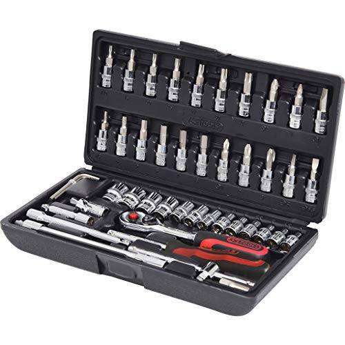 Wie unser KS-Tools-Ratschenkasten-Vergleich zeigt, sind viele von ihnen mit einem Hartschalenkoffer aus Kunststoff ausgestattet. Doch auch das Innenleben kann sich sehen lassen. Denn wenn Sie einen KS-Tools-Ratschenkasten kaufen, entscheiden Sie sich für ein echtes Qualitätsprodukt. Die einzelnen Teile sind sauber gearbeitet und bestehen laut verschiedenen KS-Tools-Ratschenkasten-Tests im Internet zum Beispiel aus hochwertigem Vanadium-Stahl.