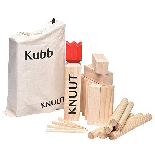 » Mehr InformationenBei diesem gelungenen Taktik- und Bewegungsspiel ist das Alter irrelevant, denn auch viele Kinder haben Spaß am Werfen und Zielen üben. Viele Hersteller für Hägars Wikingerschach bzw. Wikingerschach empfehlen es ab 6 oder 8 Jahren. Aber auch im Alter von 5 Jahren können Kinder sich für das Spiel begeistern. Grundsätzlich ist Kubb ein Outdoor-Spielspaß für Kinder und Erwachsene. Vor allem, wenn Kinder mitspielen, ist ein XXL-Kubb vielleicht eine Überlegung wert. So liegen die massiven Figuren gut in der Hand.