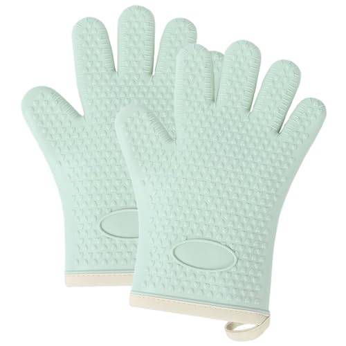 Laut diversen Küchenhandschuhe-Tests aus dem Internet halten diese Topfhandschuhe in der Regel Temperaturen von 200–300 ℃ aus. Wenn die Küchenhandschuhe schmutzig werden, können Sie diese einfach in die Waschmaschine geben und bei geringer Temperatur waschen. Es gibt sie auch als lustige Küchenhandschuhe mit spaßigen Motiven.