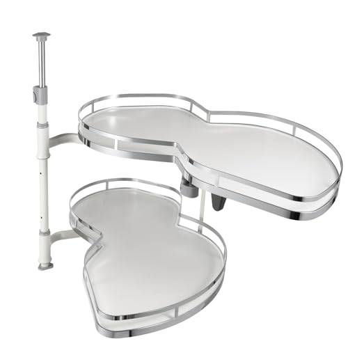 Eckschrank-Küchenrondelle sind außerdem oftmals mit einer Riffelung am Boden versehen, da Töpfe auf einer glatten Ebene leicht umherrutschen können. Um den Platz möglichst effizient ausnutzen zu können, sollten Sie außerdem darauf achten, dass die Etagen in der Höhe verstellbar sind.