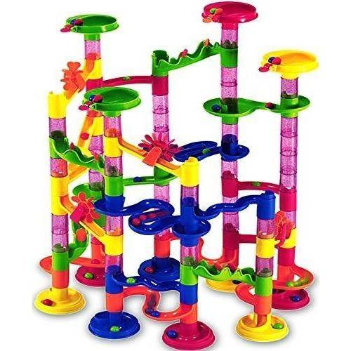 Alters-Hinweis: Kugelbahnen zum Selberbauen setzen bereits erste feinmotorische Fähigkeiten voraus, um die gebrechlichen Bahnen nachhaltig sicher zu errichten. Ebenso ist ein erweitertes logisches Denken erforderlich, um die Gesetze der Schwerkraft optimal zu nutzen. Aus diesem Grund empfehlen sich Produkte wie die Quadrilla Vertigo erst ab circa 4, eine Fischertechnik ab 9 Jahren.