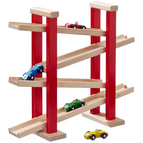 Einfach gehaltene Produkte wie die Kullerei Kugelbahn von Haba oder die Haus-Kugelbahn von Eichhorn müssen weder zusammen- noch können sie auseinandergebaut werden. Es handelt sich um mehrstöckig angebrachte Fahrschienen, auf denen die Kugeln Etage für Etage abwärts rollen. Manche Modelle sind sogar mit Kugelbahn-Autos anstelle von Murmeln ausgestattet. Wenngleich die Fahrbahn in der Regel eben und glatt ist, gibt es einige Modelle mit unterschiedlicher Oberflächenstruktur. Rasen die Kugeln über die Fahrbahn hinweg, werden unterschiedliche Geräusche erzeugt. Ebenso können Sie eine Kugelbahn mit Glockenspiel erwerben, das verlässlich den Zieleinlauf der Kugeln signalisiert.