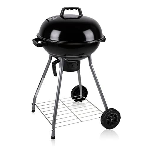 Der Bakaji Holzkohlegrill beeindruckt durch seine gute Qualität und Verarbeitung. Mit diesem Grill können Sie Fleisch, Fisch und Gemüse auf Holzkohle zubereiten, was Ihren Gerichten den authentischen Grillgeschmack verleiht. Der Grill verfügt über einen Deckel, der charakteristisch für die Kugelform ist und nicht nur aus einer Schale mit Rost besteht. Dies ermöglicht vielseitige Grillmöglichkeiten und trägt zur Qualität des Grillens bei.