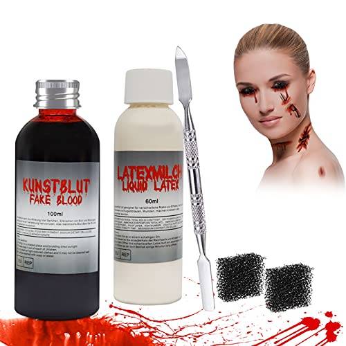 Wachs- oder pastenförmiges Kunstblut wird für realistische Hautverletzungen eingesetzt, da es mit Modelliermasse kombiniert werden kann. Spezielle Sprühblut-Varianten werden für großflächige Blutspritzer genutzt und trocknen schnell.