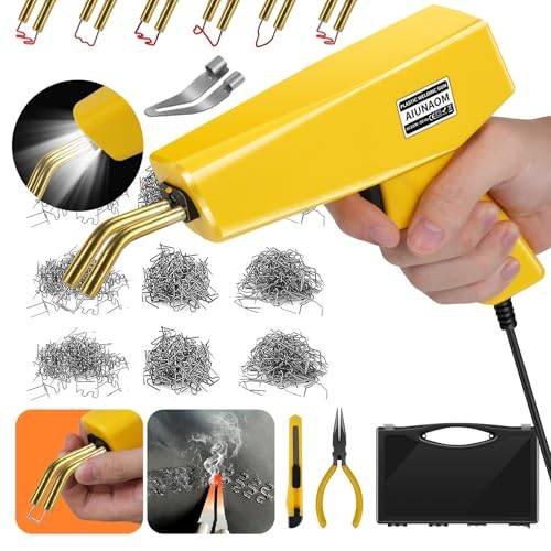 Dieses Kunststoff-Schweißgerät der Marke Tosucs verfügt über 200 Klammern (Eckklammern, flache sowie Innen- und Außenklammern).