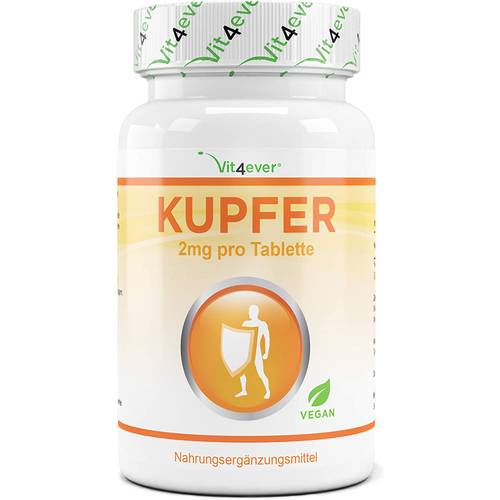 Eine Kupfer-Überdosierung ist also nicht zu unterschätzen. Mit einer Kupfer-Tablette täglich, die 2 mg enthält und einer normalen Ernährung ist die Menge von 10 mg aber nur schwer erreichbar und Sie müssen sich keine großen Sorgen machen. Allerdings sollten Sie nicht ohne ärztliche Rücksprache die Einnahme von Kupfer-Tabletten erhöhen.