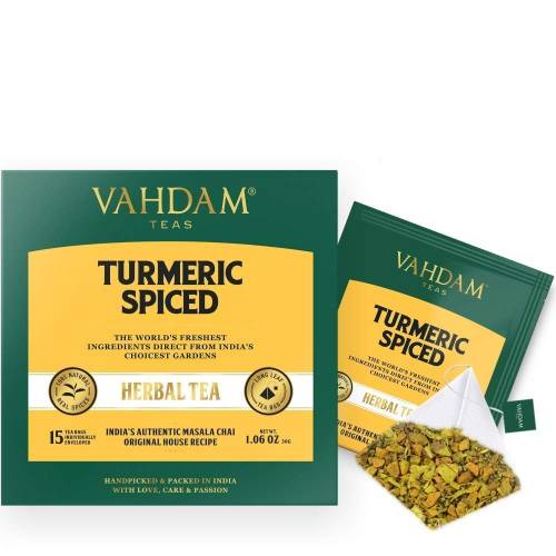 Platz 2 | Vahdam Turmeric Spiced | ca. 18 € | Teebeutel | 3 bis 5 Minuten | ||