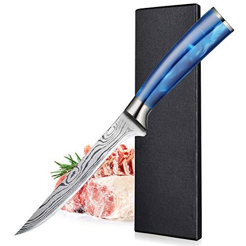 weniger Wartung als andere Materialien kann sehr scharf geschliffen werden und behält seine Schärfe gut kann schwieriger zu schärfen sein als Damaststahl oder Kohlenstoffstahl | ist in der Regel rostfrei und nicht anfällig für Korrosion kann extrem scharf geschliffen werden behält diese Schärfe oft länger als herkömmlicher Edelstahl kann empfindlicher gegenüber Rost sein, insbesondere wenn er nicht richtig gepflegt wird erfordert regelmäßige Reinigung und Ölung teurer aufgrund des aufwändigen Herstellungsprozesses | einzigartiges, attraktives Muster, das durch das Schmieden verschiedener Stahlsorten entsteht