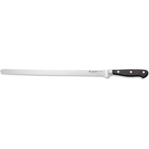 Ein Lachsmesser zeichnet sich durch eine spezielle Klingenform aus und wird in diversen Lachsmesser-Tests im Internet auch als Schinkenmesser, spezielles Kochmesser oder Filetiermesser bezeichnet. Wenn Sie ein Lachsmesser kaufen, sollte das vorne rund sein und keine Spitze haben. Laut Lachsmesser-Tests im Internet ist durch diese Form gewährleistet, dass Sie nicht in den Lachs hineinstechen.