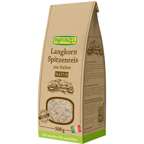 Es gibt weißen Langkornreis und Langkorn-Vollkornreis beziehungsweise -Naturreis.