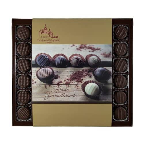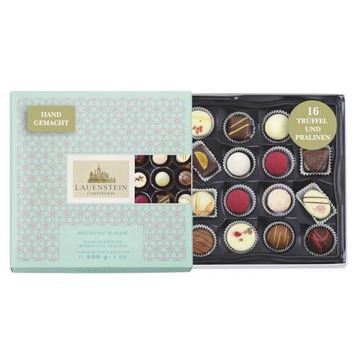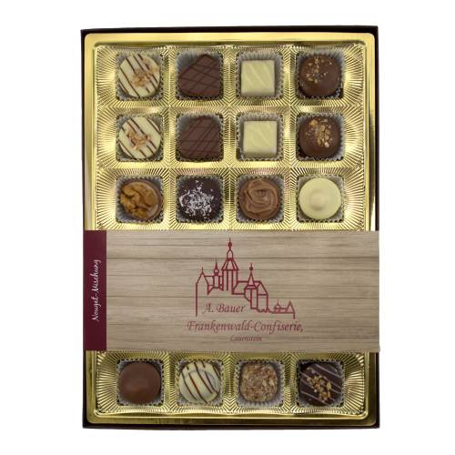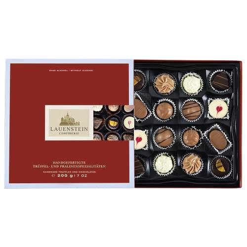 Grundsätzlich enthalten die meisten Pralinenmischungen der Confiserie, darunter auch das Lauenstein-Schatzkästchen, sowohl alkoholische als auch alkoholfreie Pralinen und Trüffel. Sie können sich aber auch für rein alkoholfreie Pralinenkästen entscheiden.