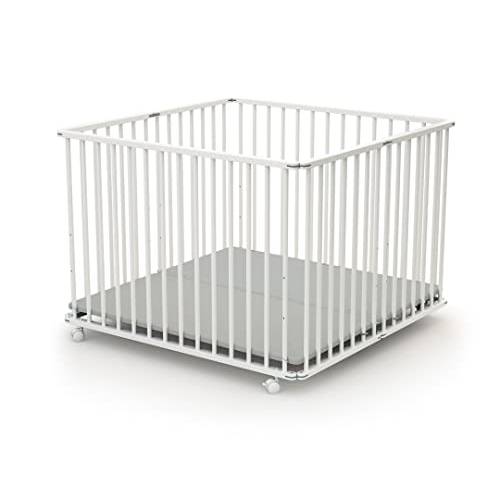 Viele Eltern greifen auf einen Laufstall bzw. ein Laufgitter zurück, um ihrem Baby einen sicheren Platz zum Spielen zu bieten, wenn sie sich kurz einmal nicht im Zimmer befinden. Quadratische Laufgitter, z. B. mit den Maßen 100 x 100 cm, sind dabei eine beliebte Option. Sie lassen sich platzsparend gut in einer Ecke des Zimmers integrieren, sind alltagstauglich und vielseitig einsetzbar.