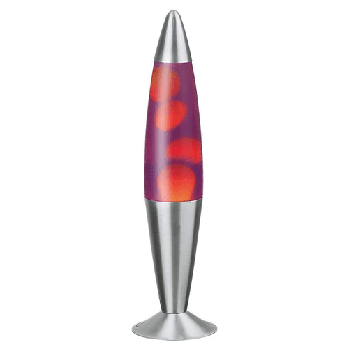Hier sehen wir die Lavalampe „LP-30A“ in Rot, die im typischen Raketenstil gebaut ist.