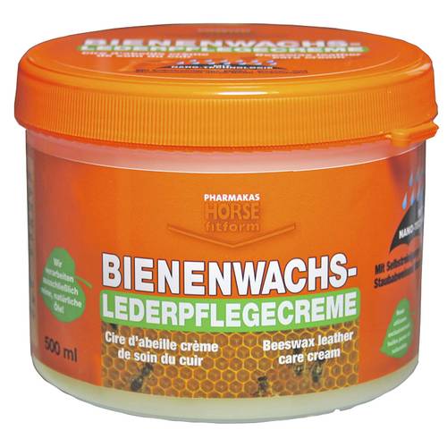 Das Fouganza-Lederfett, das wir hier sehen, eignet sich zur regelmäßigen Pflege von Reitsätteln, Trensen, Stiefeln und anderen stark beanspruchten Lederwaren.