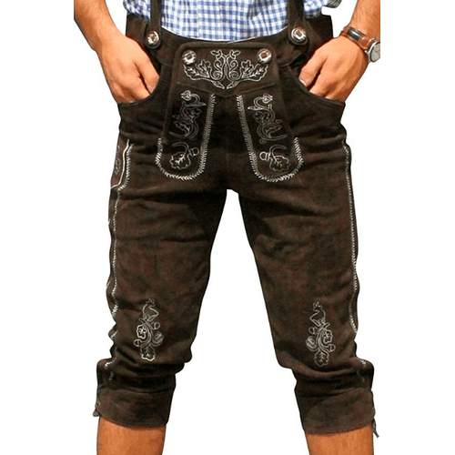 Kurze Lederhosen: Ursprünglich waren kurze Trachten-Lederhosen lediglich am südbayerischen Alpenrand verbreitet. Die Länge geht auf das Schuhplatteln zurück, einem bayerischen Volkstanz. Durch das Schlagen auf die nackte Haut des Oberschenkels entstehen die charakteristischen Schnalz-Geräusche.