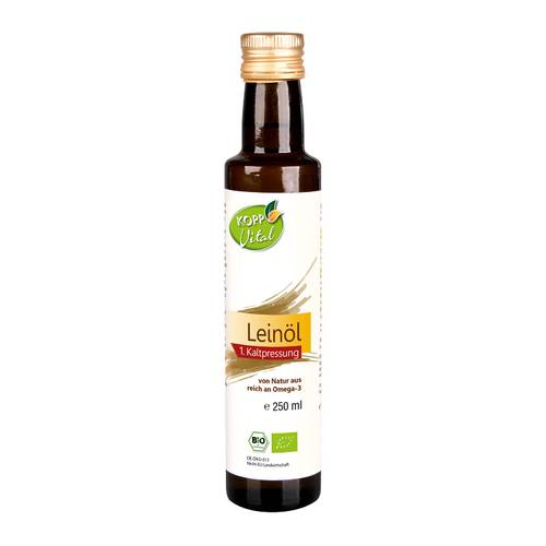 Leinöl wie dieses von enerBIO ist besonders reich an Omega-3-Fettsäuren. Omega-3-Fettsäuren fördern die Herzgesundheit und die Entwicklung des Gehirns.