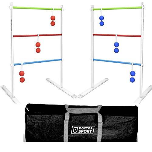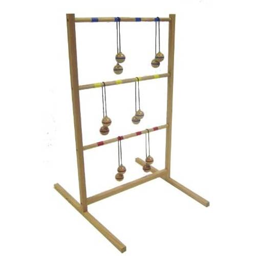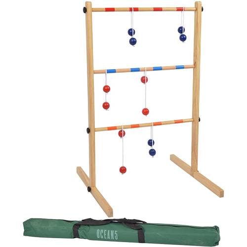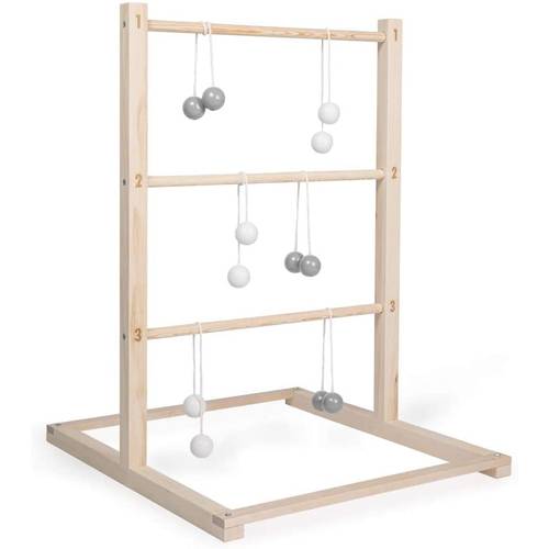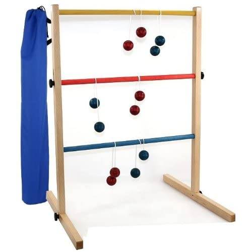 Ihr Spiel besteht den Leitergolf-Praxis-Test nur, wenn es komplett ist: Sie benötigen zu Bolas verbundene Leitergolf-Bälle, im Idealfall in verschiedenen Farben, und ein Gestell mit Standfüßen und drei Wertungssprossen. Die besten Leitergolf-Gestelle besitzen Markierungen, die es ermöglichen, den Punktestand direkt abzulesen. Wenn Sie das Spiel oft transportieren müssen, achten Sie im Leitergolf-Vergleich auf Modelle mit einer Tragetasche.