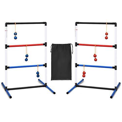 Das Leitergolf-Spiel von Ubergames ist im Vergleich mit anderen Leitergolf-Spielen inklusive roter und blauer Softbälle erhältlich. Laut Hersteller können mit der anwenderfreundlichen und stabilen Holz-Ausführung schon sechsjährige Kinder problemlos spielen. In unserem Vergleich fiel uns ferner auf, dass dieses Modell zwar vergleichsweise teuer ist, dafür aber in einer wiederverschließbaren Transporttasche geliefert wird. Wir empfehlen es allen, die ein langlebiges und leicht zu montierendes Leitergolf-Spiel kaufen wollen.